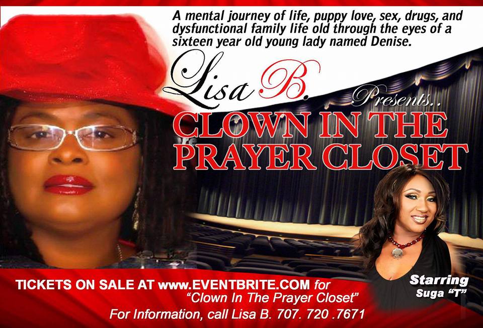 Clown In The Prayer Closet takes you on a mental journey of life, puppy love, sex, drugs,and dysfunctional family life told through the eyes of a sixteen year old young lady named Denise. A great Stage Play with some great life lessons. Our headliners are Suga T sister of E40 and an original member of the Clique we are also glad to present T-Millz from P Diddy's Making The Band. This play has no harsh language, violence or sexual content.